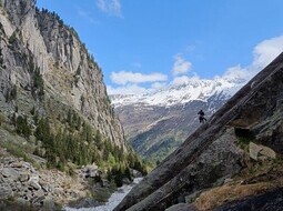 Tja… wenn es unten nichts mehr zu tun gibt, dann müssen wir am nächsten Tag wohl ins Voralptal weiterziehen. Man könnte nun erstmal mit Info-Sessions zu Seiltechniken etc. starten und ganz klassisch sanieren. Doch als wir an den auserkorenen Wänden an der linken Talseite ankommen, beginnen wir sofort spannende Linien im Fels zu entdecken: hier eine Zickzacklinie, da eine Verschneidung, dort ein auslaufender Riss! Der Forscherdrang ist geweckt und so starten einige Seilschaften direkt in die Erschließung neuer Routen.