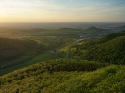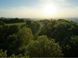 Mit Bahn und Bus erreichten wir kurz vor 19 Uhr unseren Startpunkt beim Freibad Pfullingen. Gleich auf dem ersten Abschnitt Pfullingen – Schönberg absolvierten wir die meisten Höhenmeter der Tour beim Albaufstieg. Zunächst vorbei an Wiesen, dann steiler durch den Wald erreichten wir den Schönberg (Pfullinger Onderhos), und wurden mit einer tollen Aussicht im warmen Abendlicht belohnt. Alle unterhielten sich ganz angeregt. Es war spannend vom Leben der anderen Mitwanderer zu erfahren.